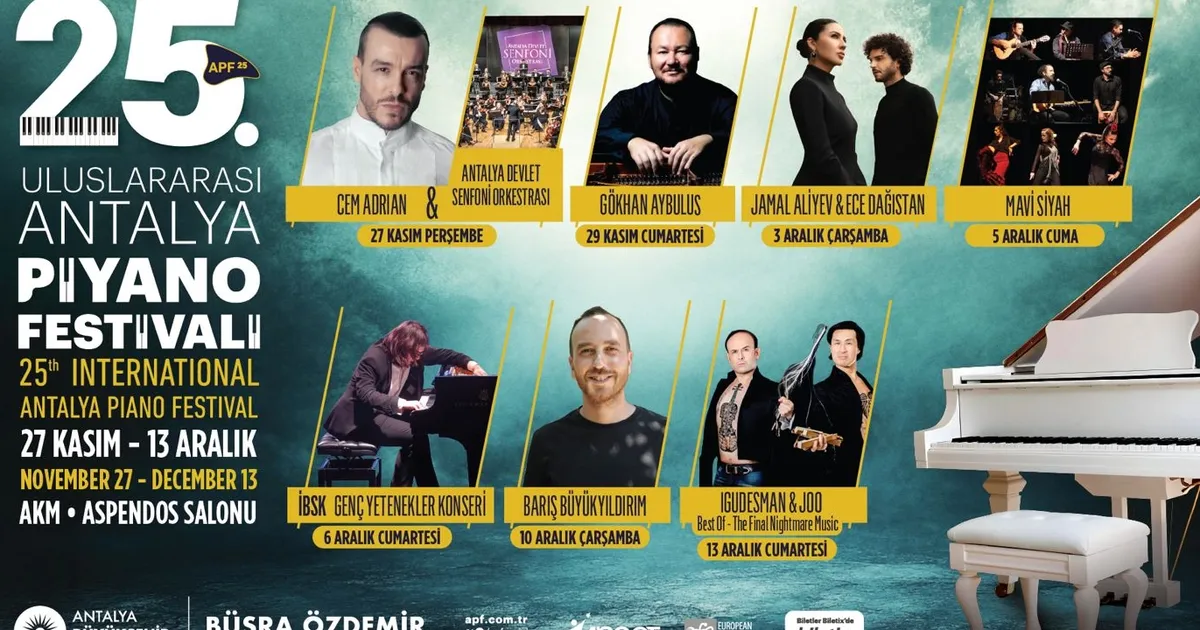 Türkiye’nin en önemli kültür-sanat etkinliklerinden biri olan Uluslararası Antalya Piyano Festivali, bu yıl 25’inci kez müzikseverlerle buluşacak. Piyano Festivali’nin açılışı 27 Kasım Perşembe günü Antalya Atatürk Kültür Merkezi (AKM) Aspendos Salonu’nda, Türk müziğinin güçlü ve büyüleyici seslerinden biri olan Cem Adrian ve Antalya Devlet Senfoni Orkestrası konseri ile gerçekleşecek.
