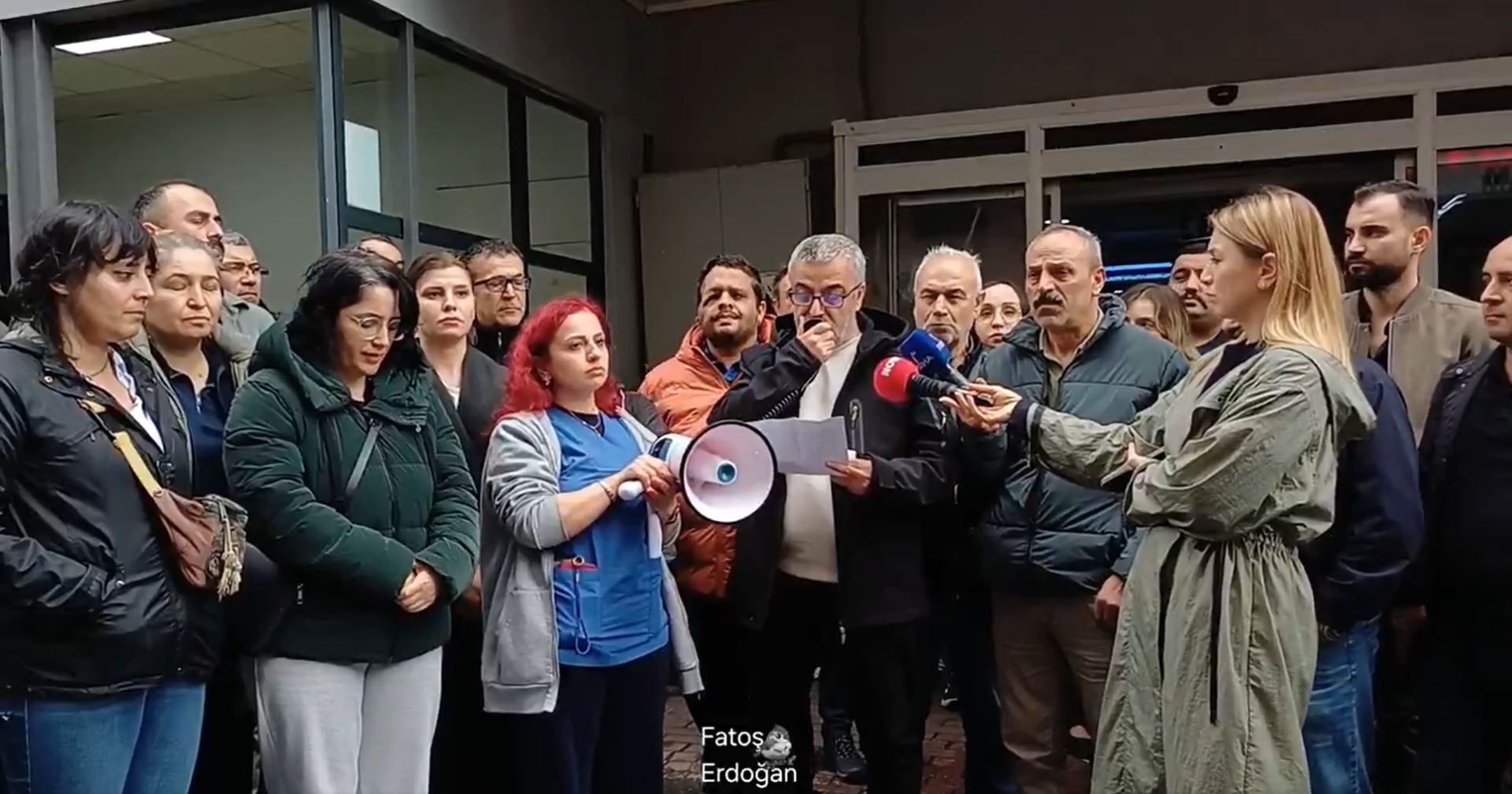 Görüntü: Fatoş ErdoğanGazeteci Fatoş Erdoğan’ın haberine göre; basın açıklamasını hastane çalışanı ve işyeri temsilcisi Uğur Balık okudu.